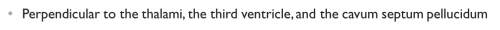 What measurement is taken Perpendicular to the thalami, the third ventricle, and the cavum septum pellucidum