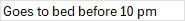 25. Goes to bed before 10 pm