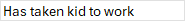 5. Has taken kid to work