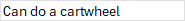 36. Can do a cartwheel
