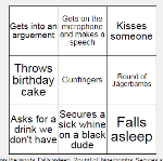 FallsasleepSecures asick whineon a blackdudeThrowsbirthdaycakeAsksforbuffetGets intoanarguement "Birthdaydiscount"KissessomeoneMakes aspeech onmicrophoneFallsasleepSecures asick whineon a blackdudeThrowsbirthdaycakeAsksforbuffetGets intoanarguement"Birthdaydiscount"KissessomeoneMakes aspeech onmicrophone