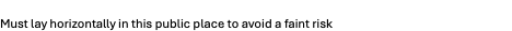 8. Must lay horizontally in this public place to avoid a faint risk