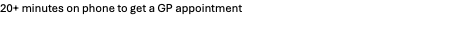 10. 20+ mins on phone to get a GP appointment