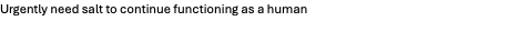 5. Urgently need salt to continue functioning as a human