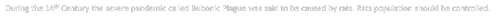 During the 14th Century the severe pandemic called Bubonic Plague was said to be caused by rats. Rats population should be controlled.