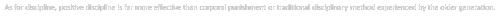 As for discipline, positive discipline is far more effective than corporal punishment or traditional disciplinary method experienced by the older generation.