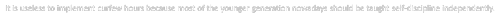 It is useless to implement curfew hours because most of the younger generation nowadays should be taught self-discipline independently.