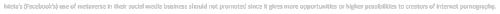 Meta’s (Facebook’s) use of metaverse in their social media business should not promoted since it gives more opportunities or higher possibilities to creators of internet pornography.