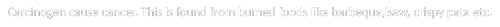 Carcinogen cause cancer. This is found from burned foods like barbeque,isaw, crispy pata etc.