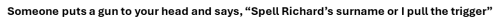 Someone puts a gun to your head and says, “Spell Richard’s surname or I pull the trigger”