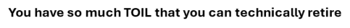 You have so much TOIL that you can technically retire