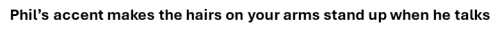 Phil’s accent makes the hairs on your arms stand up when he talks
