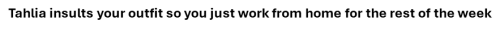 Tahlia insults your outfit so you just work from home for the rest of the week