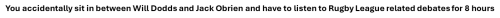 You accidentally sit in between Will Dodds and Jack Obrien and have to listen to Rugby League related debates for 8 hours
