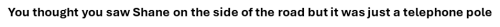 You thought you saw Shane on the side of the road but it was just a telephone pole