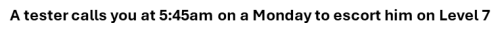 A tester calls you at 5:45am on a Monday to escort him on Level 7