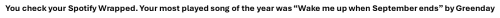 You check your Spotify Wrapped. Your most played song of the year was “Wake me up when September ends” by Greenday