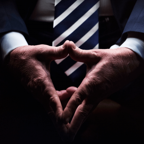 sitting behind his desk