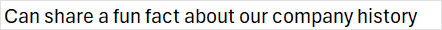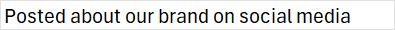 Posted aboutour brand onsocial mediain the lastweekShared asuccessstory withthe team Has run amarathon orcompleted afitnesschallengeKnows howto motivatea hesitantclient Can quote afavoritemovie or TVshow ondemandcan share afun factabout ourcompanyhistoryCollaboratedwith anotherdepartmenton a project Hascompleted aNetflix seriesbingerecentlySet a newpersonal orprofessionalgoal Knows thebest wayto energizea team Used ourentireproductline Tried anew hobbyin the pastyearHas beenwith thecompany forover 5 years Visited 3 ormore regionsfor work lastyear Achievedmore than10 corporateevent goals Helpedonboard anew teammember Recommendeda product to afriend or family Has a petwith auniquenameSupporteda colleagueduring abusy period Learnedsomethingnew abouta product currentlyhelping outwith anotherterritoryHas a secrettalent orunusual skillVolunteeredfor a newresponsibility Learned anew skilllastquarter Posted aboutour brand onsocial mediain the lastweekShared asuccessstory withthe team Has run amarathon orcompleted afitnesschallengeKnows howto motivatea hesitantclient Can quote afavoritemovie or TVshow ondemandcan share afun factabout ourcompanyhistoryCollaboratedwith anotherdepartmenton a project Hascompleted aNetflix seriesbingerecentlySet a newpersonal orprofessionalgoal Knows thebest wayto energizea team Used ourentireproductline Tried anew hobbyin the pastyearHas beenwith thecompany forover 5 years Visited 3 ormore regionsfor work lastyear Achievedmore than10 corporateevent goals Helpedonboard anew teammember Recommendeda product to afriend or family Has a petwith auniquenameSupporteda colleagueduring abusy period Learnedsomethingnew abouta product currentlyhelping outwith anotherterritoryHas a secrettalent orunusual skillVolunteeredfor a newresponsibility Learned anew skilllastquarter
