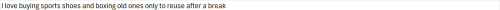 I love buying sports shoes and boxing old ones only to reuse after a break