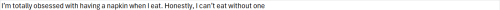 I’m totally obsessed with having a napkin when I eat. Honestly, I can’t eat without one