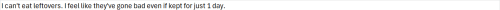 I can't eat leftovers. I feel like they've gone bad even if kept for just 1 day.
