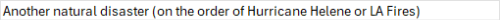 5. Another natural disaster (on the order of Hurricane Helene or LA Fires)