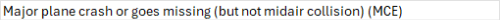 13. Major plane crash or goes missing (but not midair collision) (MCE)