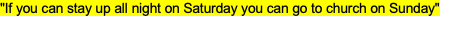 G-"If you can stay up all night on Saturday you can go to church on Sunday"