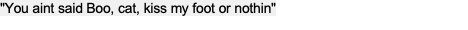 O-"You aint said Boo, cat, kiss my foot or nothin"