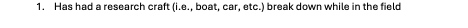 Has had a research craft (i.e., boat, car, etc.) break down while in the field