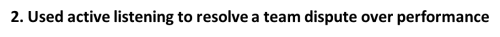 2. Used active listening to resolve a team dispute over performance