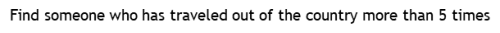 Find someone who has traveled out of the country more than 5 times