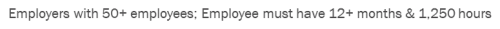 Employers with 50+ employees; Employee must have 12+ months & 1,250 hours