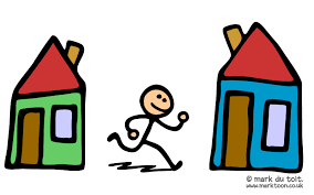 2. La persona está entre las casas