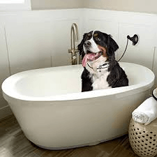 16. El perro está adentro de la bañera