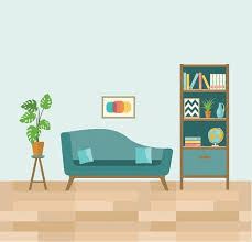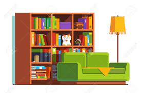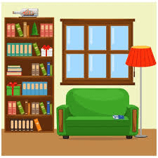 11. El estante esta detrás del sofá