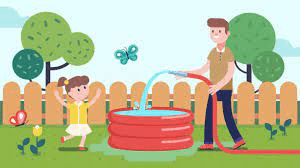 4. Mi padre y mi prima están afuera de la piscina