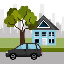 13. El coche está enfrente de la casa