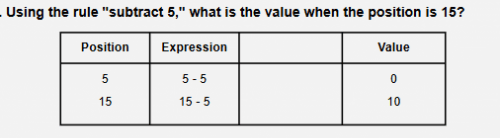 Using the rule "subtract 6 from the position," what is the value when the position is 30?