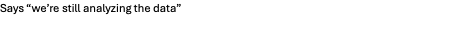 Says “we’re still analyzing the data”