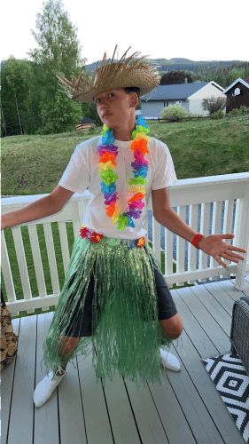 Konfirmanten tar av jakka
