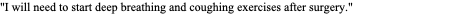 12. "I will need to start deep breathing and coughing exercises after surgery."