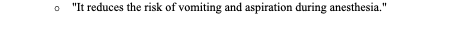 19. "It reduces the risk of vomiting and aspiration during anesthesia."