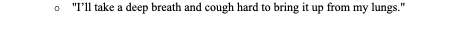 10. "I’ll take a deep breath and cough hard to bring it up from my lungs."