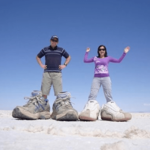 N-take a photo as a group pointing at a ‘Keluar’ (exit) sign