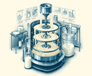 מכניסים את השמנת לתוך מתקן שמסתובב במהירות גבוהה וגורם לכדוריות השומן להתחבר