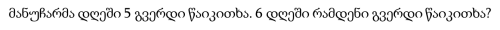 მანუჩარმა დღეში 5 გვერდი წაიკითხა. 6 დღეში რამდენი გვერდი წაიკითხა?