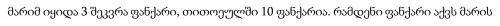 მარიმ იყიდა 3 შეკვრა ფანქარი, თითოეულში 10 ფანქარია. რამდენი ფანქარი აქვს მარის