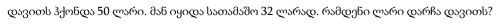 დავითს ჰქონდა 50 ლარი. მან იყიდა სათამაშო 32 ლარად. რამდენი ლარი დარჩა დავითს?
